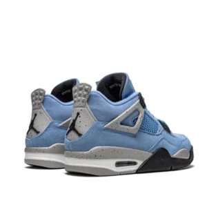The Air Jordan 4 “UNC” is an April 2021 colorway of Michael Jordan’s fourth signature shoe that honors Michael’s alma mater, the University of North Carolina. The first-ever Jordan 4 in a “UNC” makeup, this collegiate design follows previous Air Jordans to employ the popular theme—the Air Jordan 3 “UNC” and the Women’s Air Jordan 1 Mid “UNC” from 2020. Jordan Brand adds several athletic inspired touches to the look, including adding a “removable” name tag to the nylon Jumpman branding on the suede tongue in reference to the product tag on the bottom of basketball jerseys. The upper is constructed from supple University Blue suede, save for the tongue and mid-panel which feature tonal mesh detailing. Black plastic lace holders appear on the throat and collar and the plastic “Wings” tabs are given a decidedly “Cement” inspired look. The classic “Cement” detailing also appears on the back of the shoe with black Jumpman branding and on the mudguard. A small visible Air unit in the heel completes the look.