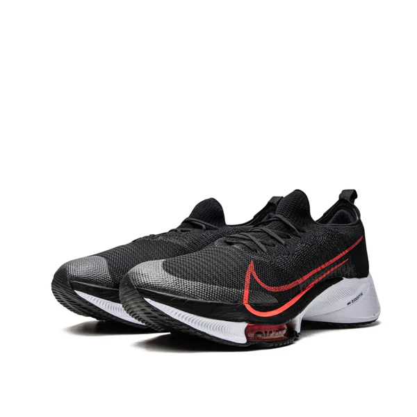 Perfect for running, the Nike Air Zoom Tempo Next % is inspired by learnings from the premiere racing shoe, the Nike Air Zoom Alphafly NEXT%. This pair arrives in a black Flyknit construction for a perfect fit, while two Zoom Air pods under the forefoot provide efficient energy return and responsiveness while running.