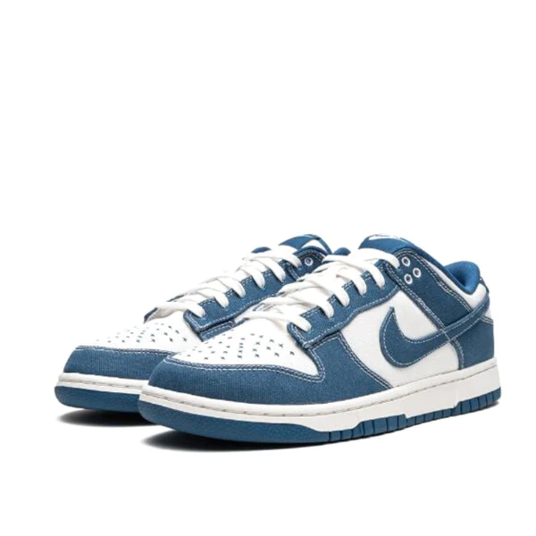 The Nike Dunk Low Shashiko “Industrial Blue” is a colorway of the classic basketball shoe that replaces its traditional leather build with a premium textile twill. More specifically, the “Industrial Blue” features a Summit White textile base with Industrial Blue textile overlays and Swoosh branding with white contrast stitching. White Shashiko stitching is embroidered on the toe and heel. Underfoot, a white rubber midsole and blue outsole complete the look.