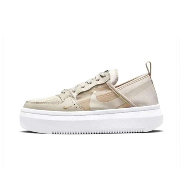 Stay on trend in the Women’s Nike Court Vision Alta Sneaker. Transparent mesh and synthetic upper in a lifestyle sneaker style with a round toe. Lace-up closure. Heel pull tab. Padded tongue for increased comfort. Collapsible heel. Soft lining with cushioned insole. Lifted platform foam midsole. Durable traction outsole.