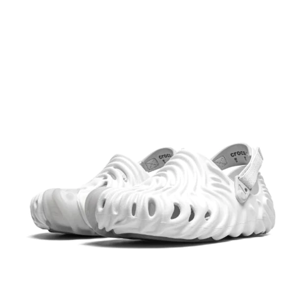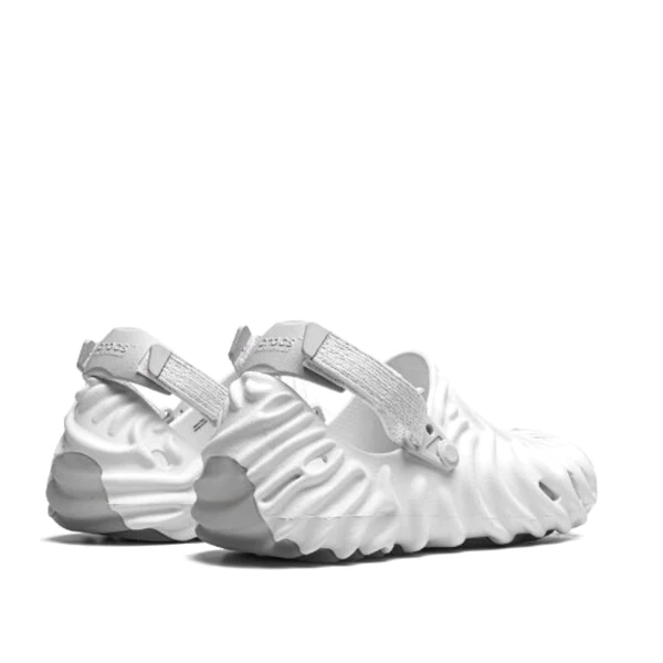 The Salehe Bembury x Crocs Pollex Clogs “Stratus” is a collaboration between the acclaimed footwear designer and the footwear company known for its casual, clog sandals. Following his departure from Versace, Salehe Bembury began collaborating with the likes of New Balance and Crocs, and other brands, but it’s his work with the former two entities that has created the most buzz in sneakers. His Crocs Pollex Clogs are beloved for their effortless yet creative appeal. Here, the “Stratus” features a monochromatic white appearance with concave ridges throughout the design. The shoe’s straps on the heel are modulated and can be worn fastened or undone. Vent holes are placed in high heat areas for ventilation.