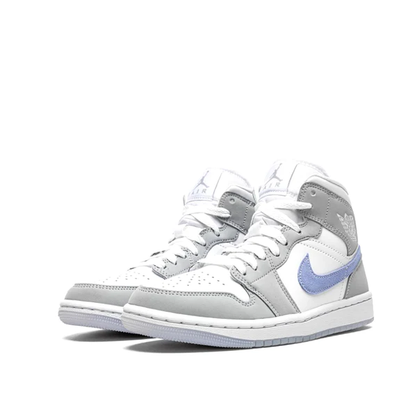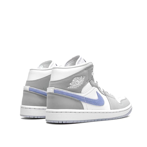 The Women’s Air Jordan 1 Mid “Wolf Grey/Aluminum” is a women’s exclusive look for Michael Jordan’s iconic first signature shoe. Interestingly, the “Wolf Grey/Aluminum” colorway is reminiscent of the white-and-grey color block of the Dior x Air Jordan 1 from 2020, one of the most coveted Air Jordan releases of all time. Like Dior’s high fashion-inflicted take on the retro basketball shoe, the “Wolf Grey/Aluminum” features white leather on the perforated toe, mid-panel, and collar. Contrasting grey leather detailing highlights the look of the forefoot, eyelets, collar, and heel. Unlike the Dior x Air Jordan 1, the “Wolf Grey/Aluminum” is constructed with a blue suede Swoosh on either side. A white “Wings” graphic adorns the collar and a low-contrast, grey Jumpman logo sits above “Air” branding on the white nylon tongue.