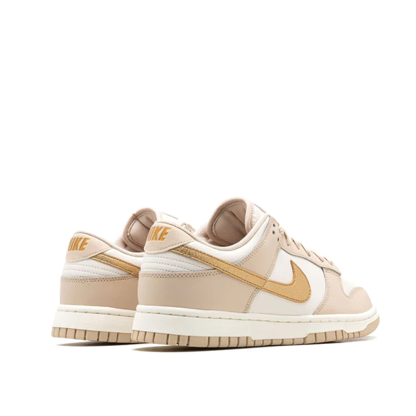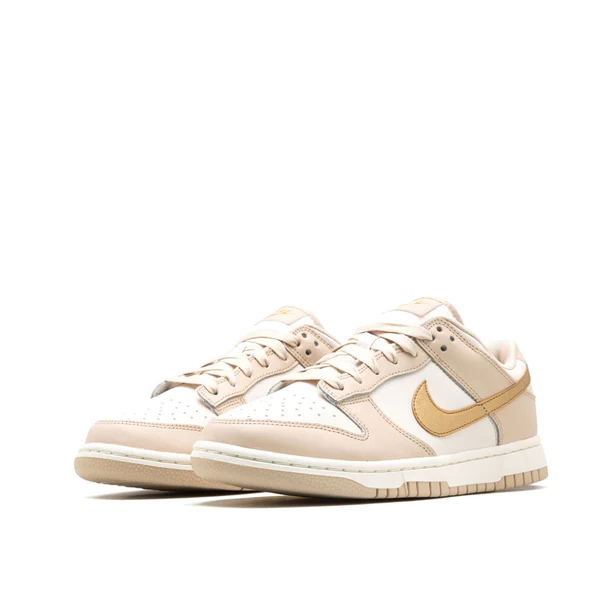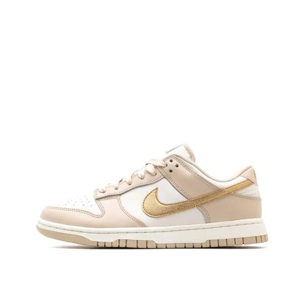The Women’s Nike Dunk Low “Phantom/Metallic Gold” is a women’s-exclusive colorway of the classic low-top shoe with a premium-looking design. In the “Phantom/Metallic Gold” rendition, Nike updates the retro basketball shoe with a white leather construction with Phantom-colored leather overlays. A Metallic Gold leather Swoosh appears on the sides and gold “Nike” branding is embroidered on the heel. Additional gold accenting includes a “Nike” logo on the tongue. A Sail midsole and Phantom rubber outsole complete the look.